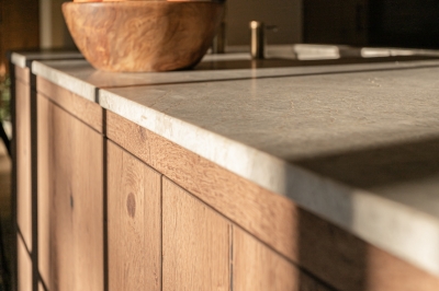 Kristine, een van onze interieurontwerpsters, heeft met haar creatieve visie deze keuken ontworpen voor een particuliere klant, welke liefde heeft voor natuurlijke materialen.
